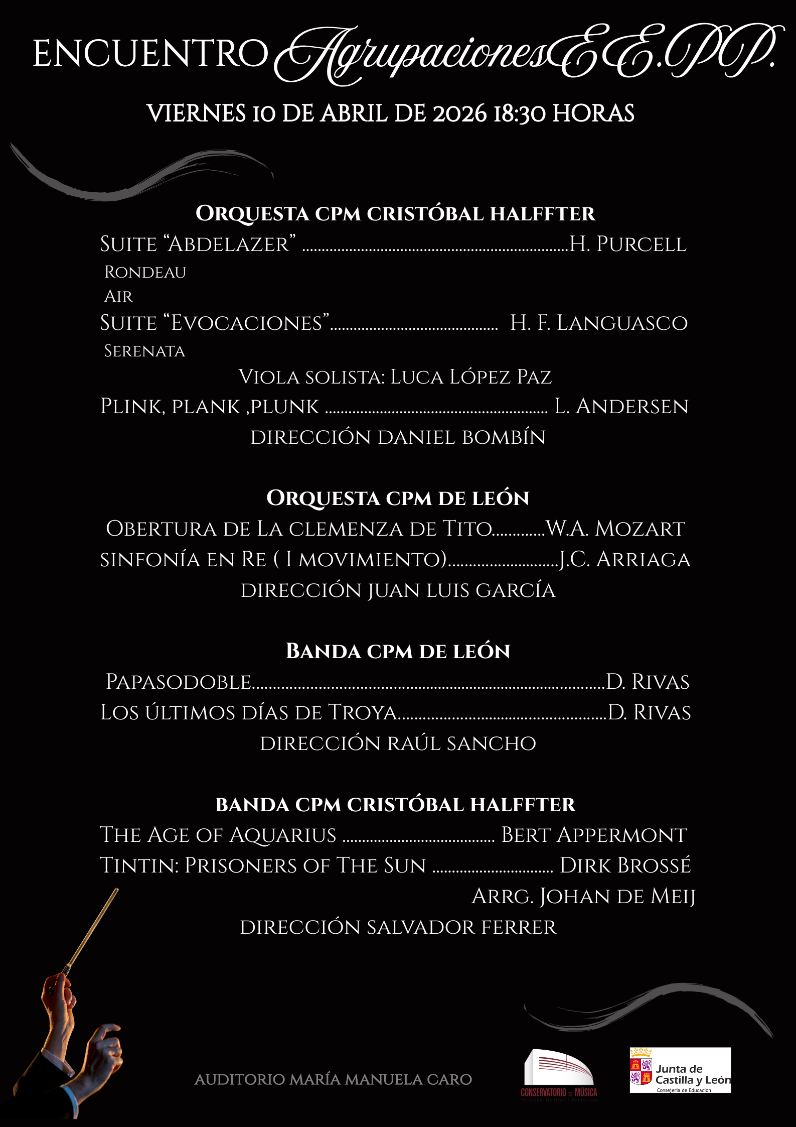 - CONCIERTO ENCUENTRO AGRUPACIONES EE.PP. CONSERVATORIOS DE LEÓN Y PONFERRADA 10-04-2026